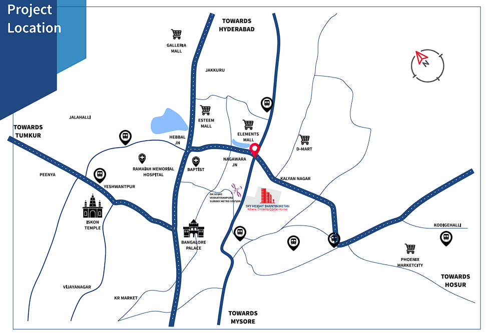Shanthiniketan sits at the intersection of convenience and calm — minutes from Hebbal Junction, Manyata Tech Park, and the upcoming Veerannapalya Metro Station, yet tucked away enough that you feel the city is something you choose to step into, not something you can never escape.